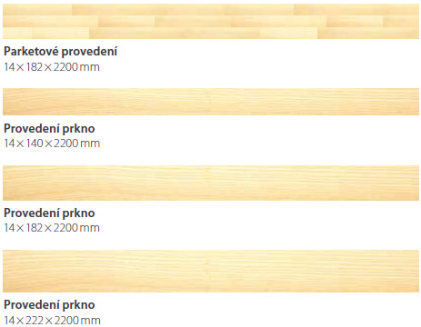 Jedinečný výběr nejrůznějších rozměrů podlahových prvků nabízí široké možnosti uspořádání i individuální úpravu přesně na míru danému prostoru. V závislosti na uspořádání podlahových prvků lze vytvořit různé vzory parket, které propůjčí prostorům individuální vzezření.